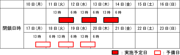 ※各日11:00~翌8:00において閉鎖箇所前後の本線車線規制及び路肩規制を実施します