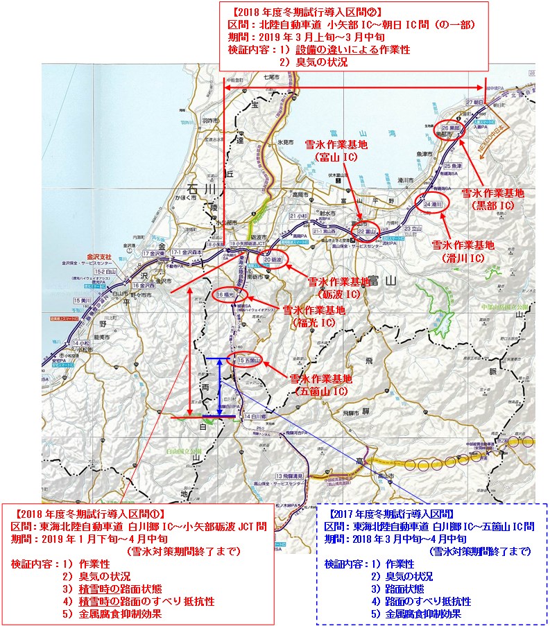 (雪氷作業基地は砺波IC、富山IC、滑川IC、黒部IC)