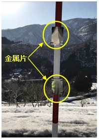 【写真8】本線スノーポールに設置した金属片の腐食状況