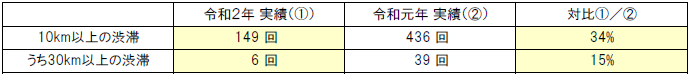 - 昨年と比べ、10km以上の渋滞回数は436回が149回に減少(66%減)、30km以上の渋滞回数は39回が6回に減少(85%減)