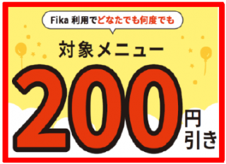 「Fika」をご利用のお客さまに一部の対象メニューを200円値引きします。