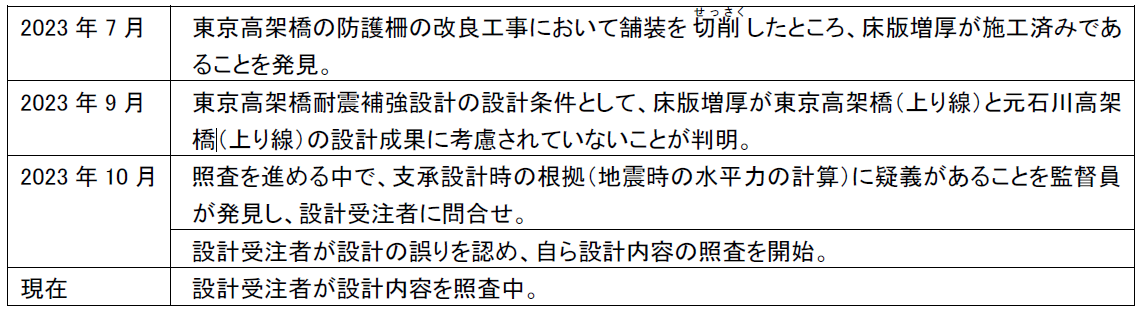 今回判明した誤りは、設計計算過程に誤りがあったことと共に、過去に実施した施工内容や今後実施する改良計画が設計に反映されていなかったというものです。