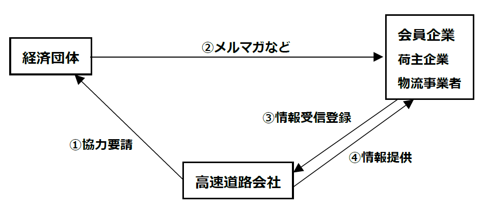 徹底的な出控え要請のため、経済団体に協力をいただき、荷主企業や物流事業者に当社から直接情報提供をおこなう仕組みを構築します。また、当社管内において大雪の予測などがある場合には、従前実施しているテレビCMやラジオCMの緊急告知について、隣接高速道路会社と連携し関西地区での充実を図ります。