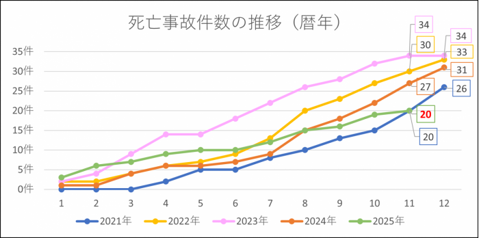 NEXCO中日本が管理する高速道路では、2025年(1月~11月)に20件の交通死亡事故が発生し、21名の尊い命が失われました。(11月26日現在、当社調べ)