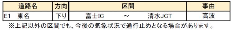 * NEXCO中日本管理在中央道高速公路的饭田山本IC-Sonohara IC,中田IC-长坂IC和北陆道的Maruoka IC-Kaga IC上执行“链条管制”的高速公路。 ,“ Kinomoto IC-Imajo IC”。